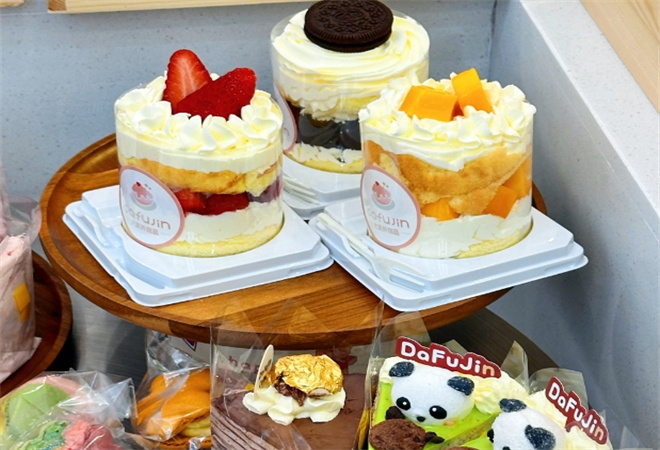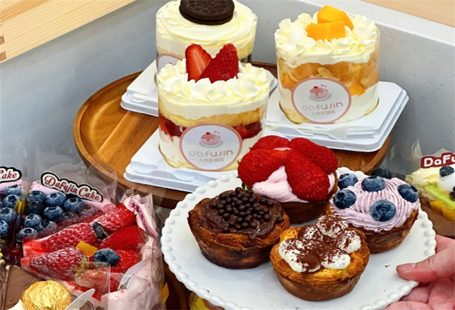 大芙妗甜品品牌介绍: 甜品,是最大众化、需求量最大的主食品种,却也是最见甜品师制作功力的品种。大芙妗甜品筹建之初,创始人就从香港、澳门,后来又从新加坡和台湾聘请了著名的法式甜品师,和自己的团队一起,系统地向老师学习西式甜品的制作理念和工艺,在老师指导下制作出了奥利奥大福、焦糖可颂厚乳蛋糕、芒果小蛋糕、霸气榴莲千层、莓果提拉米苏、招牌焦糖可颂蛋糕、榴莲芒果蛋糕、生椰可可、香醇米布丁、榴莲糯米糍、榴莲班戟、果缤纷裸蛋糕、蓝莓小小糕、雪媚娘姥姥等颇受市场欢迎的各式甜品。 为了真实全面地掌握好甜品的制作规律,大芙妗甜品人扎进了实验室和醒发车间、烘焙车间,无数次地观察和研究甜品制作中各种食材、辅材的配比,研究国产小麦经过什么样的改良和替代才能达到制作法式甜品需要的筋度、灰度等硬性指标,无数次地为烘焙时甜品中心温度达到口感最好的85摄氏度而反复试验。不眠不休地观察醒发过程,亲眼看着加入发酵剂的面团舒展着身体,慢慢膨大成蜂窝状的较大面团,通过嗅味道,找到标志着醒发合适的特殊酸香味,标记出醒发度最好的性状临界点。