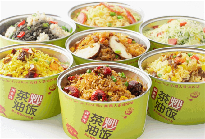 五谷易拉罐茶油炒饭品牌特色: 1、自动化后厨:智能操作,制作时间短,机械化操作,免人力物力,统一配送料包。 2、料包化调味:中央工厂配送,无需调制口味,口味统一化,仅需配比调制皆可,提升制作效率。 3、简易化操作:无需行业相关经验,经过五谷易拉罐茶油炒饭总部名师手把手指导,轻松掌握全套特色餐品制作。 4、消费定位准:创新的餐品品味,平价的消费水平,消费人群更广,投资经营更轻松。