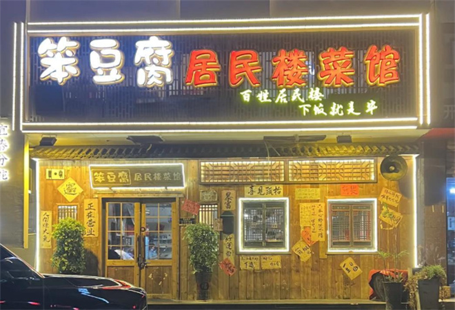 笨豆腐居民楼菜馆品牌介绍: 笨豆腐居民楼菜馆菜品超多,更是有许多令人打开味蕾的招牌菜,汤和辣度甚得我意,超级下饭!介绍几个非常好吃的下饭菜。搓菜炒金钱蛋,这个真的超爱,鸡蛋煎成虎皮状,吃完嫩嫩的鸡蛋后,里面的搓菜超级下饭,直接干两碗大米饭!!红糖糍粑,这道菜相比于在其他餐馆的更加的糯,又香又甜,结尾来上一份香甜软糯的糍粑让人大感满足,爱吃甜食的宝子们冲~茶油水蒸蛋,做的非常的嫩,入口就像果冻一样,滑嫩可口。笨豆腐不仅风味好吃吸引人,店内的装修风格也是宝藏,到店就是满满的复古风和各式各样有趣的对联。 笨豆腐居民楼菜馆菜品兼具鲜辣过瘾与醇厚风味。为满足不同食客的口味需求,笨豆腐居民楼菜馆还提供多种菜品选择,无论是无辣不欢的食客,还是偏爱清淡口味的朋友,都能在这里找到心仪的美食。“现炒下饭菜道道都现炒”这是我们始终坚守的品牌使命。笨豆腐居民楼菜馆以家常赣菜为主打,凭借实惠的价格和地道的口味,服务了洪都三代人,积累了深厚的社区口碑。