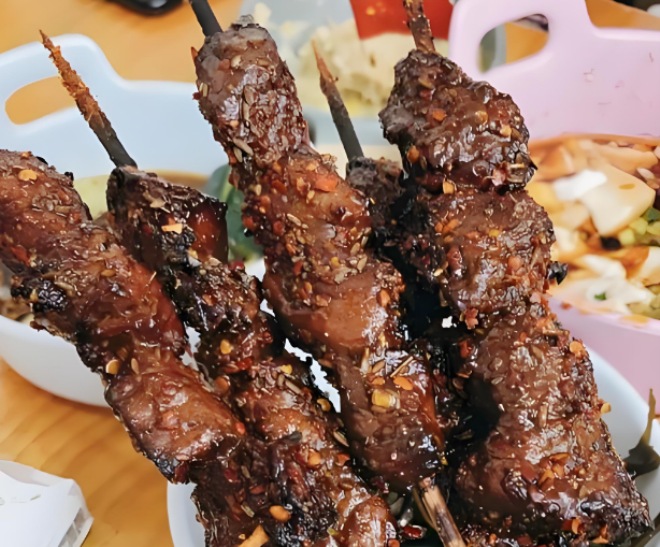 炒豆合作社烤串特色菜品: 炒豆合作社烤串的烤小蘑菇清新脱俗,与彩椒同挂一根竹签,在略油腻的烤串中显得格外特别,简直是肉肉的完美搭档。烤小蘑菇,颜值超高的小蘑菇串,保留了蘑菇的完整口感,又不会觉得油腻。皮都可以嘬到爽的烤大虾一定别错过!刷的特色酱料,上面撒上勾魂的佐料,直接吃就完事! 炒豆合作社烤串店里的黑椒土豆泥黑胡椒香气很提神,热乎乎一勺下去,能让味蕾从连环重口里缓一下。烤馒头片/烤面包片两面烤到金黄,抹酱一合,既能当主食,又是“打底神器”。烤小蘑菇、烤大虾、鸡生蚝、臭豆干这些也很有辨识度;尤其小蘑菇,锁汁做得不错,咬开“嘭”的一声是汁水,配上孜然和椒盐,肉食间隙来一口,节奏刚好。