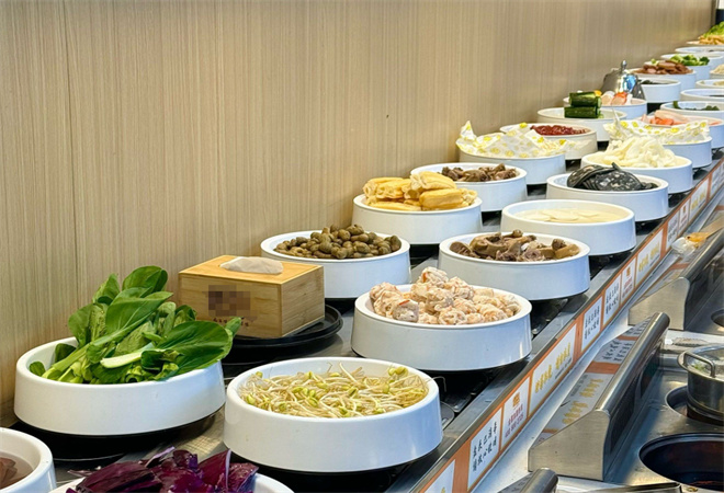 蜀云腾旋转小火锅小料台非常丰富,有六种锅底可以选择,除了锅底,还有各种饮料自助,简直是吃货的天堂。冰淇淋也很棒,虽然只有三种口味,但每一种都很好吃。小吃种类也很丰富,有炸鸡、小蛋糕、蛋挞、鸡架、鳕鱼条、波波肠,还有各种水果等等。菜品种类也非常多,各种肉卷、鸡肉条、贡菜、毛肚等等,想吃的基本都有! |