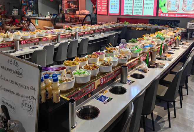 蜀云腾旋转小火锅不断推陈出新,不再是简单的煮煮涮涮,迎合多数人对健康养生的新需求,吃的美味,吃得放心,更吃的健康。蜀云腾旋转小火锅食材都很新鲜,推荐午餐肉、河虾、牛羊肉,量大好吃,吧台式火锅,带来火锅新风尚!