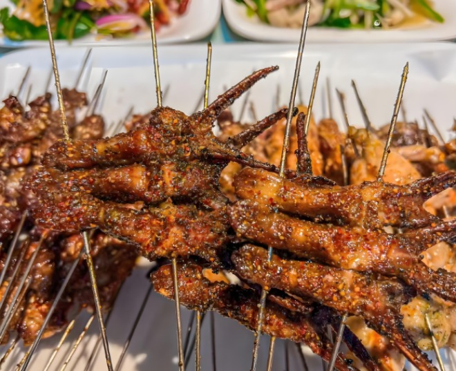 吉三胖烤酱油筋品牌优势: 吉三胖烤酱油筋除了烤串,还有清爽的凉菜和解腻的饮品,搭配起来刚刚好。店里的招牌菜是烤林蛙,清一色的母蛙,用炭火烤焦,稍微撒点盐辣椒调味就能吃。外皮焦脆冒油,里面软糯带籽,吃起来就停不下来!烧烤必备的羊宝羊腰!鲜嫩的肉质和独特的香味,简直就是餐桌上的舞蹈,吃到嘴里真的是感动到不行! 吉三胖烤酱油筋店里炒方便面,看似普通的一道小吃,却蕴含着无限的美味。面条炒制得恰到好处,保持着弹性和咬劲。麻辣羊拐筋锅,满满一锅,羊拐筋软糯又有嚼劲,麻辣入味,啃起来超带劲。麻辣涮毛肚毛肚鲜嫩香脆,锅中还可以涮菜和肉,仿佛小火锅,体验感极佳。店里的蘸料选择也多,根据自己的口味调配,每一口都是专属的美味。