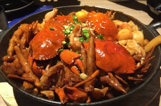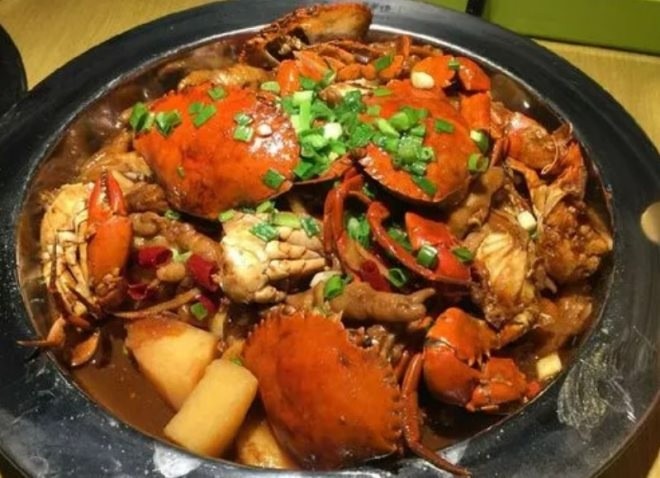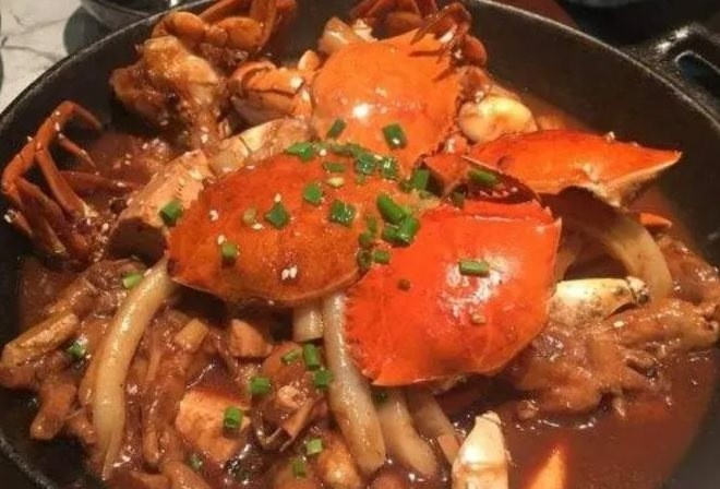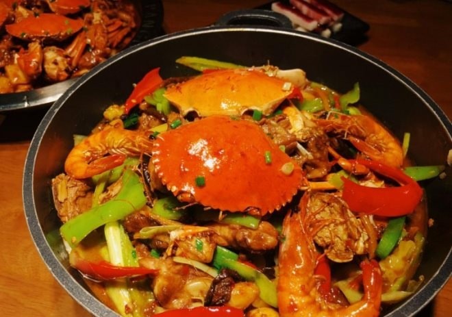 肉蟹煲起源于明朝皇宫的精致砂锅,蟹老板肉蟹煲由砂锅烹饪,新鲜的肉蟹、虾为主料,配上宫廷配制香料,并加入各种辅料,由大火煲制而成,肉蟹鲜美汤羹浓,深受皇帝喜爱,成宫廷御食名菜。