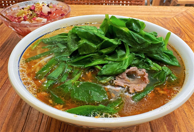 听老板说,牛肉每天都是现切现卖,新鲜得很!汤底更是一绝,用牛骨和多种香料慢炖,喝一口,鲜美的味道直接在嘴里爆开,暖到心底。米线根根爽滑,裹满了浓郁的汤汁,嗦起来超级过瘾。再配上爽脆的酸菜和嫩绿的葱花,一口米线一口汤,每一口都是享受。 |