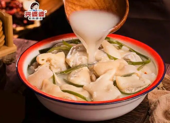 ?兴婆婆老妈蹄花?品牌介绍: 兴婆婆老妈蹄花?总部位于重庆,是重庆一家有名的小吃美食店,虽然店面不大,但是产品丰富,重庆杉木灰餐饮管理有限公司不仅有美味营养的蹄花汤,还有各类炒菜、小吃等,每一样美食都能让你铭记心间。?兴婆婆老妈蹄花?是经由慢火熬煮四五个小时而成,熬煮出的猪蹄汤呈奶白色,热气中散发出肉质的诱惑,还有黄豆的清香真是非常美味。猪蹄炖得软糯耙和、浓鲜无比,用筷子轻轻一弄就烂了,再配上秘制的蘸料,真是人间极品! 兴婆婆老妈蹄花经过十余年发展,已成为川渝地区受欢迎的小吃品牌。该品牌主打传统川味蹄花汤,选用新鲜猪蹄为主要原料,配以专业的方子,经过长时间炖煮而成。其产品特点是汤色乳白、肉质软糯、入口即化,深受消费者喜爱。目前,品牌在全国已开设200余家门店,形成了较为完善的加盟体系。