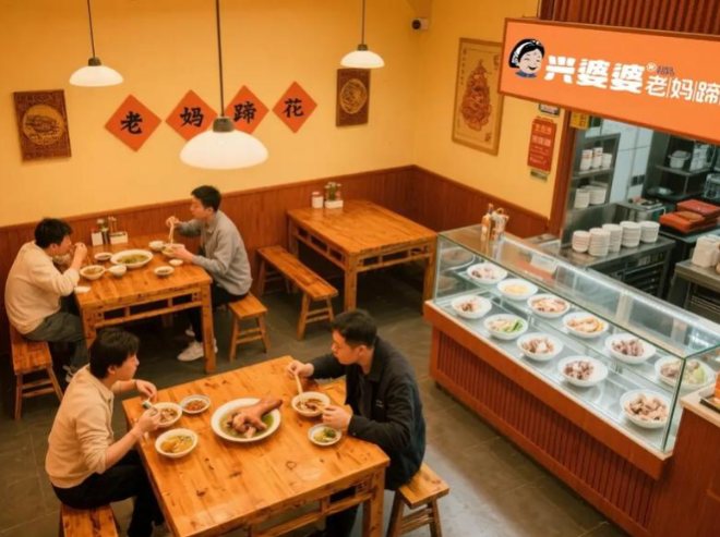 ?兴婆婆老妈蹄花?公司介绍: 重庆杉木灰餐饮管理有限公司旗下连锁品牌?兴婆婆老妈蹄花?,通过堂食+外卖+外带模式在全国拓展超1200家门店,以投资小、标准化运营和滋补定位著称。兴婆婆老妈蹄花品牌定位中端消费群体,人均消费在30-50元之间,价格亲民但营收空间可观。再者,品牌产品具有较强差异化优势,传统工艺与现代管理相结合,使其在同类竞争中脱颖而出。【更多详情】