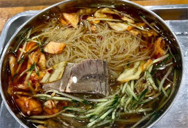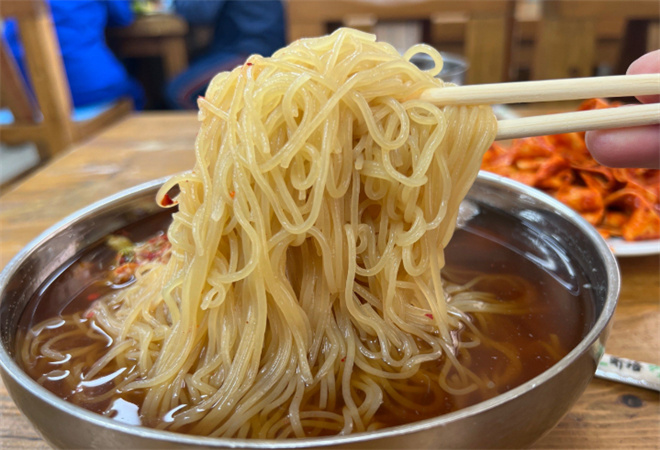 顺通大冷面可根据不同类型的面食做出不同味道的冷面,有荞麦面、玉米面、高粱米面、小麦面等,冷面皆为现场压制,口感筋道爽滑,冷面汤是采用七八秘制牛肉汤和矿泉水精心调配而成,全方位的还原了地道的延边风味,令人食之难忘。