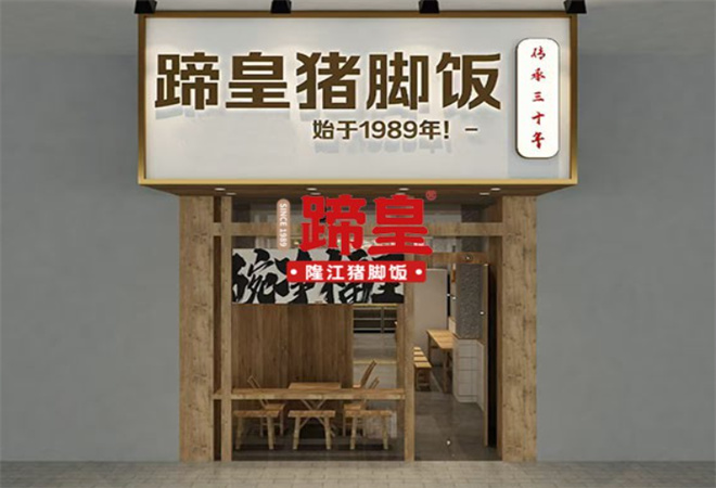 蹄皇隆江猪脚饭品牌介绍: 蹄皇隆江猪脚饭做有传承的餐饮,打造高性价比的快餐店。立志帮助一千位合作伙伴做出自己的一份事业。蹄皇隆江猪脚饭创始人来自潮汕隆江地区,继承老一辈的传统味道,经过几代人的心血和工艺的沉淀,打造出这地道潮汕风味的猪脚饭品牌,“带你一口回潮汕”。 蹄皇猪脚饭于数年间开出多家直营门店,品牌沉淀多年,历经多次四季经营,拥有丰富的快餐行业餐饮门店运营管理经验。筹建整合中央厨房、供应链体系,门店培训、线上线下运营管理体系。在食材源头拥有战略合作的屠宰场,自有中央厨房统一标准统一卤制,无需厨师快速出餐,配送到店。