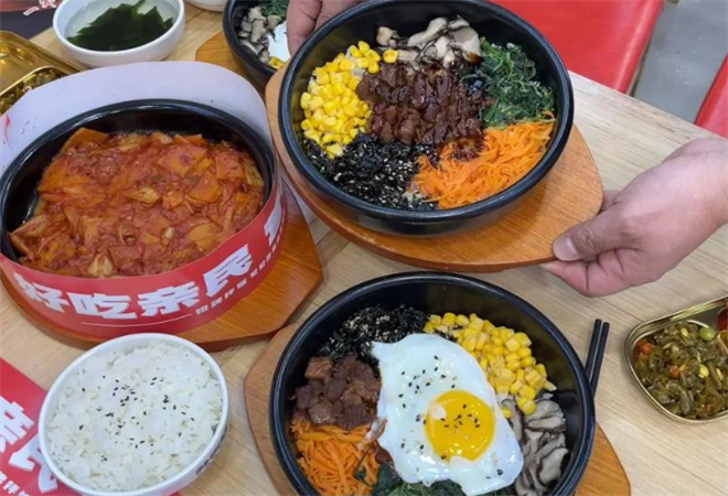 朴香村拌饭品牌介绍: 大红色招牌写着朴香村拌饭,“招牌拌饭,朝鲜特色味”的门头字凸显了店铺特色,店铺里面暖黄灯光透着烟火气,没进门就先有了好感。推门而入更惊喜,桌面擦得发亮,桌椅摆放整齐,连角落都没有一丝杂乱,干净整洁得让人心里踏实,不管是独自觅食还是和朋友小聚都超级舒服。店里海带汤、米饭、辣白菜全免费续,吃到满足为止。老板秉承“一分价钱一分货,不计成本用好料”,从优质的五常大米到新鲜时蔬,从秘制酱料到优质牛肉,从谷饲鸡蛋到优质好油,每一样都选择高品质食材,就是为了让大家吃得放心,吃得安心。 朴香村拌饭创始人紧紧抓住拌饭的发展前景,创办了拌饭品牌。我们来自五湖四海,是“朴香村拌饭”让我们相聚在当下,让我们成为了兄弟姐妹。在这黄金般的季节,我们相约在一起,为了共同的理想,我们恪守“诚实、守信、合作、共赢”的经营理念,努力将梦想变成现实,让理想展翅高飞,希望通过所有人员的努力,为每一位尊贵的客人烙下“朴香村拌饭”美好的印象,通过“专业、服务、品质、口碑”,用心出品每一份幸福感。