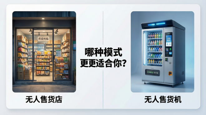 二、无人售货店 vs 无人售货机:哪种模式更适合你? 目前市场上主要有两种无人售货模式:无人售货机与无人售货店。选择之前,先看清它们的差异: 1. 投入上:机器花钱少、摆上就用,像个“智能柜”投入2-3个左右;开店需要租个地方,投入稍高,但有个正经门面,更像生意,投入4-5个左右。 2.赚钱上:机器货少,主要卖给路过的人,难接外卖,一个月能有几千的收入就算不错的;店里货多、能展示,关键能开美团、饿了么,京东到家,线上线下都能做,一个月收入三四个营业额。 3.管理上:机器怕故障,卡货、机器开放式的容易被损坏;好一点货架店用的智能系统,手机远程就能管库存、看订单,省事不少。 4.发展上:机器生意看点位,很难扩大;无人售货店店模式容易复制,形象好、能攒客,想做大有空间。 简单说: 售货机像“摆摊”,启动快但上限低; 无人售货店像“做生意”,启动稍费心但未来空间大,还能结合外卖复制性强,能做成大生意。 搞清楚这一点,接下来咱们就看看,市场上哪些品牌值得合作。