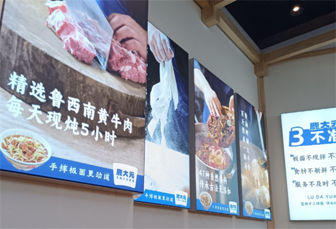 鹿大元牛肉板面品牌介绍: 鹿大元的面,是老板老鹿跑了三趟河北,跟老师傅磨了半个月学来的手艺。高筋面粉+山泉水,和面要揉足200下,醒面得等够时辰。煮面时水要滚得欢,面条入锅翻三个身,捞起来还挂着白气——夹一筷子送进嘴,先是麦香裹着面香炸开,再咬下去“吱呀”一声,筋道得能拉成丝,越嚼越有回甘。鹿大元牛肉板面受到了广大消费者的一致好评,还融合了现代快餐的元素,打造出了一流的快餐品牌,秉承着“传统与创新相结合”的理念,致力于将中华美食文化传承下去的同时,不断地进行创新和改良。鹿大元牛肉板面凭借着独特的优势,已经在国内开设了分店。 鹿大元牛肉板面全开放的厨房,甄选的原材料配方,加上传统的制作工艺,不仅保留了汤鲜味浓的口感,同时也会给广大消费者带来绿色健康的美味。鹿大元牛肉板面不仅为消费者们提供各种面食,而且还经营好几十种不同的熟食,比如说鸭脖、鸭头、鸭掌、鸡爪、鸡翅、鸡架等等。在春夏天的时候,还售卖各种凉拌菜,比如说海带丝、藕片、花生米、凉粉、黄瓜丝、腐竹等等。不管是面食还是熟食卤味,味道都很不错,都是使用上等的各种食材,口味多样,消费不高。
