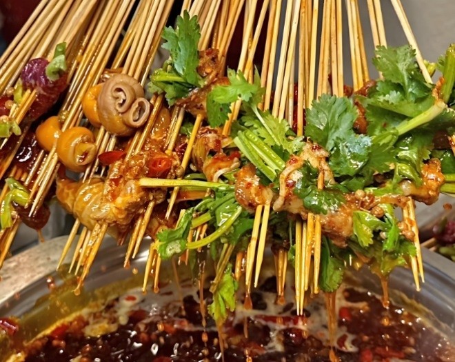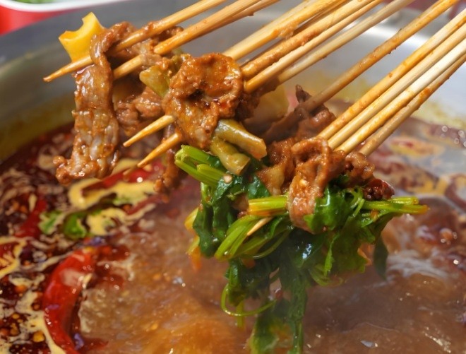 城南旧事串串香结合四川传统火锅、麻辣烫,经过重新配料,精心烹制出融合色、香、味为一体,搭配特色调味小料,口感“鲜香麻辣,温淳回甘”。 |