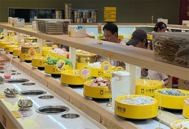 小绪牧场牛肉小火锅品牌介绍: 小绪牧场牛肉小火锅店里风格明亮温馨,服务员补菜及时。说到肉,主打盘盘9.9,手切牛肉新鲜嫩滑,牛板腱更是肉质紧实,嚼劲十足!锅底实惠多样,寿喜烧送可生食鸡蛋;9.9元原切肉、15.9元蔬菜自助性价比爆棚;还有生牛乳冰淇淋收尾,不管是一人食、朋友小聚还是工作餐,都能吃得满足又划算。 小绪牧场牛肉小火锅特别推荐三拼吊龙!一盘肉三种口味,怎么涮都好吃!原切牛小排绝对是桌上的明星!拥有如艺术品般完美的大理石雪花纹理,入口即化,奶香四溢,汁水饱满,是味觉的顶级享受。原切牛五花肥瘦比例恰到好处,在沸腾的锅中稍加涮煮,脂肪融化带来无比的嫩滑与浓郁脂香,让人回味无穷。牛上脑肉质细腻柔嫩,口感多汁且带有淡淡的甜味,无论是清汤还是辣锅,都能完美展现其优越的品质。手切牛肉这份美味背后是师傅的匠心功夫。厚薄均匀的鲜肉立盘不倒,口感紧实又有嚼劲,能吃出牛肉的鲜甜本味。安格斯牛板腱中间一条明显的肉筋是它的标志,口感层次极为丰富,Q弹与软嫩并存,肉香十足,是性价比极高的选择。