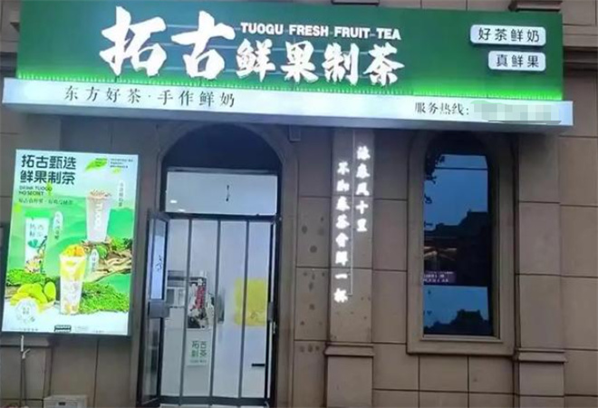 拓古制茶门面设计采用了比较潮流的设计元素,把拓古IP形象作为整个门店的视觉点,应用了绿色亚克力,内装LED灯管,门框内侧增加了动态走字屏,使整个门头附带有动感。我们将拓古鲜果制茶店打造成一个年轻人都喜爱、社交的场景,以茶会友成为了新时代社交活动新主流,舒适悠闲的店面环境,使年轻人多了一个社交的新去处。 |