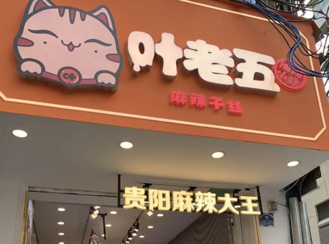 叶老五麻辣干丝品牌介绍: 叶老五麻辣干丝隶属于贵阳叶本华小吃经营有限公司,叶老五的品牌故事,始于创始人叶阿姨的一双巧手。三十多年前,叶阿姨制作的麻辣小吃在街坊邻里间备受追捧,凭借地道的口味和实在的分量,“叶老五”的名号渐渐传遍街头巷尾。叶老五麻辣干丝从千张豆腐的筛选、切丝,到卤制、炒制的火候掌控,每一个环节都延续手工制作的精髓,让味道更具温度。 经过四十年深耕,叶老五麻辣干丝品牌已在贵州本地建立起极高的知名度和美誉度,“老贵阳风味”的品牌标签深入人心。无论是民生路的老牌门店,还是逸天城等全新形象店,总能看到食客排队购买的场景,抖音等社交平台上,关于叶老五的美食推荐更是收获大量点赞,品牌影响力持续扩散。