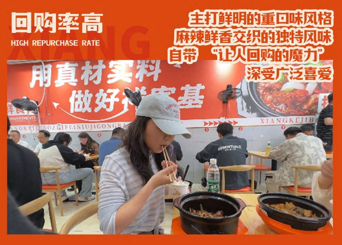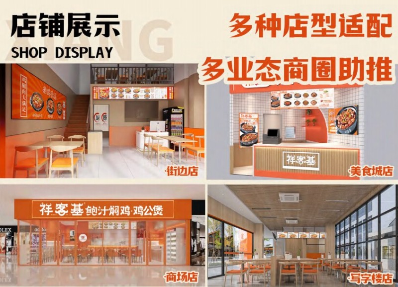 祥客基六大核心竞争力: 高性价比 300g鸡腿肉+40g酱料+配菜 米饭无限续,小菜随便吃 汤品任意喝,饮料免费喝 打破快餐出品单一性 打破快餐固定出餐模式 顾客可自主DIY加荤菜以及素菜 外卖王牌竞争力 祥客基有8年线上外卖的经验 专业团队为我们的加盟商专业赋能 标准化改造能力 颠覆线下传统饭店经营模式 人效坪效产能回本周期 成熟供应链 总部城市可实现货物下单次日到达门店 全国代理城市可实现48小时货物送达 全国6个战略分仓 正餐快餐化快餐休闲化 可做三餐:中餐+晚餐+夜宵 除了快餐外也具备朋友聚餐的场景