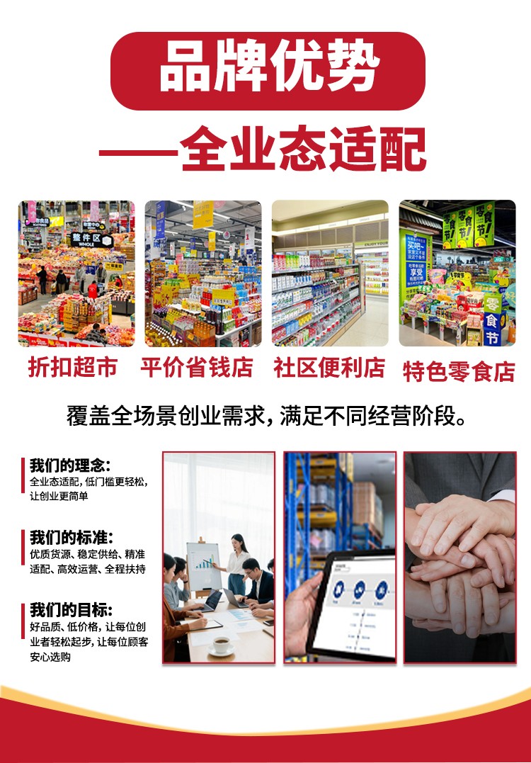 京司省钱超市的核心竞争力,首先体现在智慧新零售的多元模式上。不同于传统折扣超市的单一盈利模式,京司省钱超市打破行业局限,打造“低价零售+24H无人售货+线上线下双线运营+批量批发”一体化模式,实现“一店多开”的经营效果,多渠道同步收益,让经营没有空档期,这也是其在折扣超市加盟领域脱颖而出的关键。这种多元模式适配当下消费习惯,既满足线下即时购物需求,也兼顾线上便捷下单,更能对接批量批发客户,最大化提升门店盈利空间。 稳定的货源的是折扣超市加盟盈利的基础,京司省钱超市在这一方面展现出强大的实力。总部全程陪跑加盟商,采用源头直供模式,确保货源稳定、供货及时,同时严格把控性价比,让商品做到经济实惠、价格亲民。无论是零售卖货还是批量拿货,加盟商都能轻松把控利润,彻底解决了传统折扣超市货源不稳定、利润难把控的痛点,让京司省钱超市成为众多创业者青睐的折扣超市加盟项目。 更难得的是,京司省钱超市具备全业态适配的优势,让折扣超市加盟门槛大幅降低,适配各类创业者。不管是想开大型折扣超市、平价省钱店,还是社区便利店、家门口特色零食店;不管是零基础的创业新手,还是想升级换新品的老店经营者,亦或是寻找低价货源的各级批发商,京司省钱超市都能精准适配。这种低门槛、高适配的特点,让更多创业者有机会涉足折扣超市加盟领域,轻松开启创业之路。 从多元运营模式到稳定货源保障,再到全业态适配的低门槛优势,京司省钱超市用三大硬核实力,为折扣超市加盟创业者保驾护航。选择京司省钱超市,不仅是选择一个靠谱的折扣超市加盟项目,更是选择一个能长期共赢的创业伙伴,在广阔的零售赛道上,轻松实现创业盈利的目标。 |