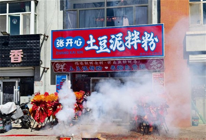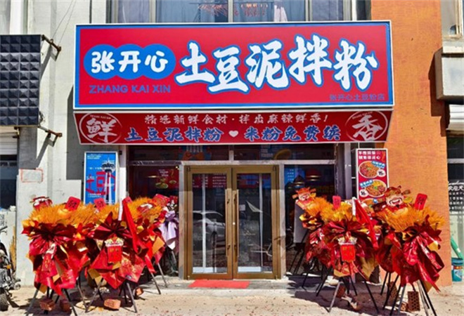 张开心土豆泥拌粉品牌介绍: 张开心土豆泥拌粉以土豆泥、卤肉和米粉为主料,搭配川式调味和浇头制作而成。其特点是土豆泥绵软起沙,卤香浓郁,米粉弹滑,口感丰富。张开心土豆泥拌粉拌粉也是在土豆泥与浇头上做出创新。分别推出有红烧、芥末、黑豆土豆泥,以及把子肉、坨坨牛肉等臊子,从口味、颜色和大块臊子上打出特色,去跟其他拌粉做区分。 张开心土豆泥拌粉,细腻口感和浓郁味道成为年轻人的最爱。与米粉的搭配,更是一种绝妙的味觉享受。粉质细腻,入口即化,加上浓郁的川味浇头,口感丰富多样。有红烧土豆泥、各色泡椒浇头、火锅冒菜浇头和烧卤浇头。无论是寻找地道的成都美食,还是想要体验不一样的拌粉风味,张开心土豆泥拌粉都是一个不容错过的选择。