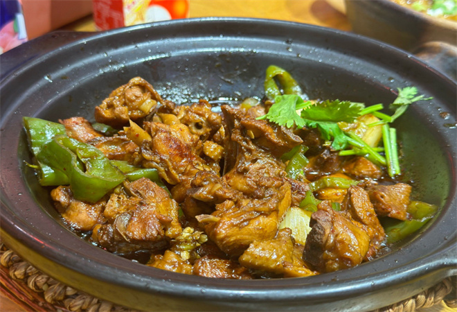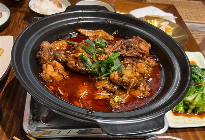 宁煲长酱香鸡煲品牌介绍: 宁煲长酱香鸡煲的铁煲腾起的热气裹着酱香,鸡肉“嗞啦嗞啦”翻腾作响。三十余载光阴流转,这家坚持直营不加盟的老店,逐渐拓展了37家门店,却始终守着创始人定下的规矩:食材当日鲜送、鸡煲现点现炒、酱汁独家秘制。如今首入南京,开业仅20余天,便凭着这份执拗的坚守,让午市座无虚席,晚市排起长队,成了热闹的打卡地点。 宁煲长酱香鸡煲后厨选用的180天以上散养三黄鸡,每日新鲜送达,厨师亲手砍块、现场炒制,10分钟的猛火煸炒让每块鸡肉都吸足秘制酱汁的香气,上桌后再慢煮5分钟,铁煲滋滋作响间,酱香愈发醇厚。这份创始人自研的酱汁是「宁煲长酱香鸡煲」的灵魂,色泽红亮诱人,入口香而不咸,久煮不柴反而愈发入味,吃完不必狂喝水,身上也不会沾染浓重的油烟味,体面又尽兴。干煲最能凸显原酱的本味,无须额外蘸料,直接吃便满口鲜香;还能根据口味选择猪肚鸡煲、肥肠鸡煲、美蛙鸡煲、鸡爪鸡煲等,每种都各有风味。