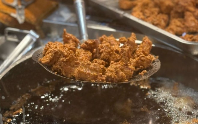 庄上一品爆汁炸鸡做出的炸鸡外皮金黄酥脆,内里鲜嫩多汁,咬一口便“爆汁”四溢。咬上一口,表皮酥脆,每一口都是喳喳作响,里面的肉嫩得出汁,散发着浓浓的新鲜鸡肉香味。