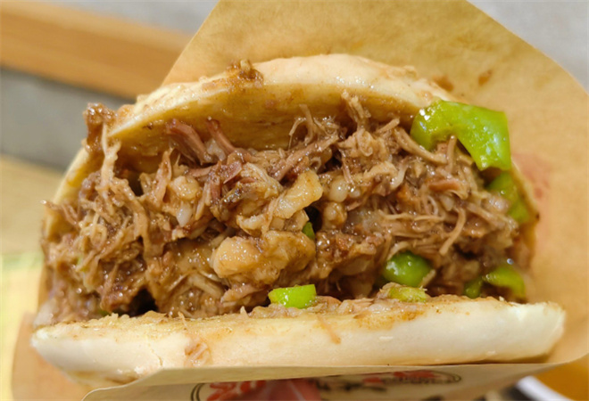 李元凉皮肉夹馍选料朴实,精工细作,味道醇厚,保持原汁原味,色亮红润、软烂醇香。刚出炉的烧饼里面是一层一层的,纹理清晰,皮薄松脆,外焦里嫩,咬一口,掉渣烫嘴,口感好。 |
