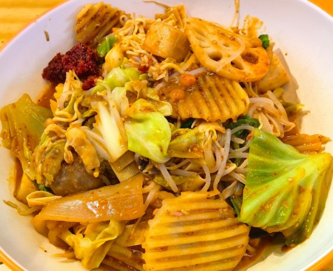 广哥麻辣拌品牌介绍: 广哥麻辣拌山西本土龙头,门店主要集中在华北。说实话,查之前我以为广哥是全国连锁大牌,翻完才发现,人家是扎扎实实的山西本土王者。我对着地图和加盟公告一条条数,榆次、灵石、介休、孝义、洪洞、临汾……几乎山西每个地级市、县城都有店。抖音里经常刷到新店开业,榆次都开到第四家了,大学城、师范大学全是店。 广哥麻辣拌13年只做麻辣拌,味道真的扛打。广哥能火这么多年,核心还是味道。我翻了上百条评论,几乎全是夸麻酱浓、口味正。酸甜辣是招牌,麻酱给得巨多,拌完每根菜都裹满酱汁,香而不腻。微辣、不辣、特辣都有,不吃辣的也能吃。菜品分两种:论份18素5荤,10元起;称斤100多种菜随便选,想吃啥拿啥。手工猫耳朵面、双层馍夹肉是必点,卤肉香、馍酥脆,好多人专门为这个来。人均15-25元,米饭免费续,学生党、打工人天天吃都不心疼。