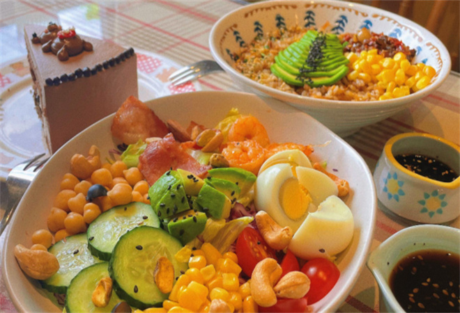 小森食堂减脂餐,每份沙拉至少拥有五种以上的色彩的食材搭配,除了在营养上搭配更加科学,每一份沙拉的在视觉上更具有吸引力,独立研发低卡轻体酱汁,不添加任何添加剂,经过多环节调整及测试更符合亚洲人的口味,整套外卖餐盒均采用环保无污染的健康材质制作而成,让人吃得放心,用的环保!