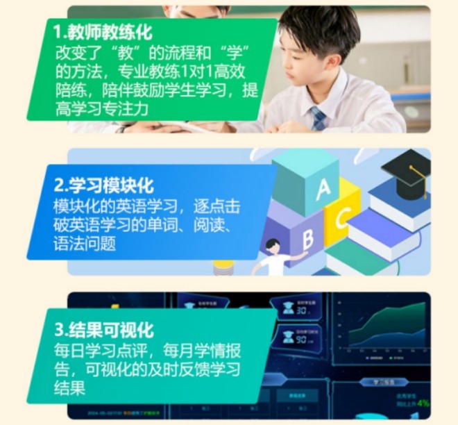 智学宝单词速记品牌介绍: 智学宝单词速记的创新之处在于它不同于传统的教育培训模式,采用“一对一服务+动态化管控+可视化学情反馈”的教学方法。每位学生都有专属的教练,通过21天的抗遗忘带读复习,帮助学生记忆英语单词,不仅提升了记忆效果,也避免了枯燥的学习方式。教练的角色不仅限于教授单词,他们还会为学生制定学习规划、梳理情绪、激发学习动力,并通过赞美与鼓励帮助学生养成良好的学习习惯,激发持久的学习兴趣。 智学宝的产品定位非常精准,主要面向小学、初中、高中、大学生及英语考试人群。课程的设计专注于帮助学生解决记忆单词、语法问题等学习障碍,通过短期高效的培训,快速提高20-60分,满足学生和家长对英语成绩提升的迫切需求。无论是在线上还是线下,智学宝的1对1伴学模式都能为学生提供个性化的学习体验,让他们能够在最短的时间内看到显著的学习成果。 智学宝单词速记采用科学的训练原理,基于五大科学记忆理论,确保每位学生的记忆效果最大化。通过艾宾浩斯遗忘曲线,学生能够掌握记忆与遗忘的规律,智学宝21天抗遗忘训练保证了长期的记忆效果;米哈里心流论让学生在专注的状态下提高学习效率;克拉申的监控理论强调英语习得的技能训练;弗拉维尔元认知策略帮助学生定制学习计划并监控学习状态;协同记忆法则通过多感官的协同作用,强化学生的记忆效果,确保学习成果更加稳定。